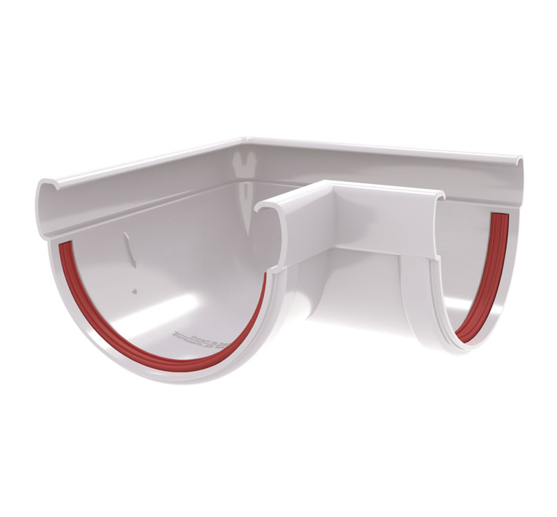 Угол желоба соединяет два желоба под углом 90°, как на внешних, так и на внутренних углах фасада.